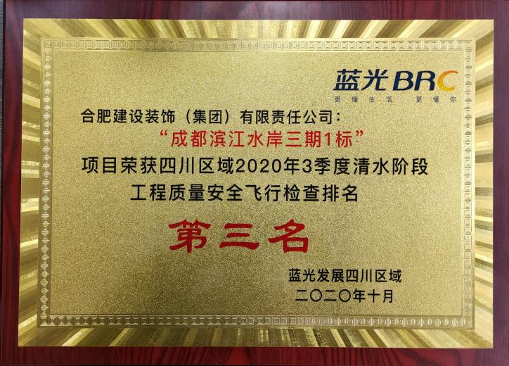 滨江水岸获蓝光发展四川区域2020年3季度飞检第三名