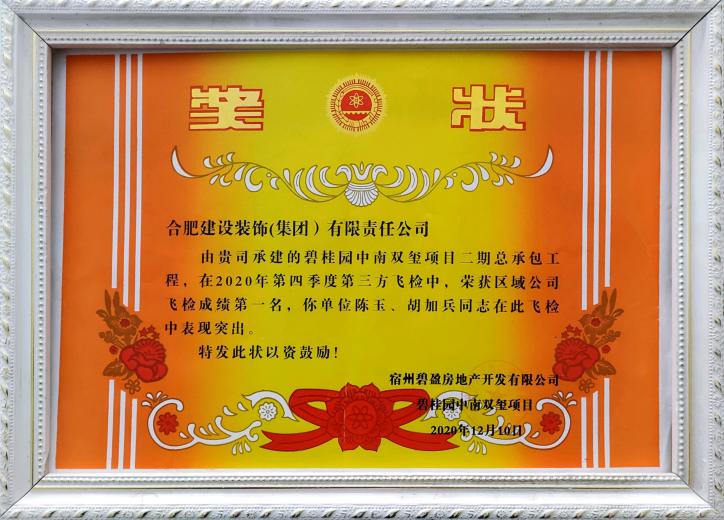 宿州碧桂园中南双玺二期总承包工程——安徽省建筑安全生产标准化示范小区优秀项目经理--陈玉