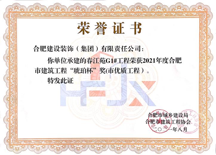 春江苑G1#--2021年度合肥市建筑工程“琥珀杯”奖(市优质工程)