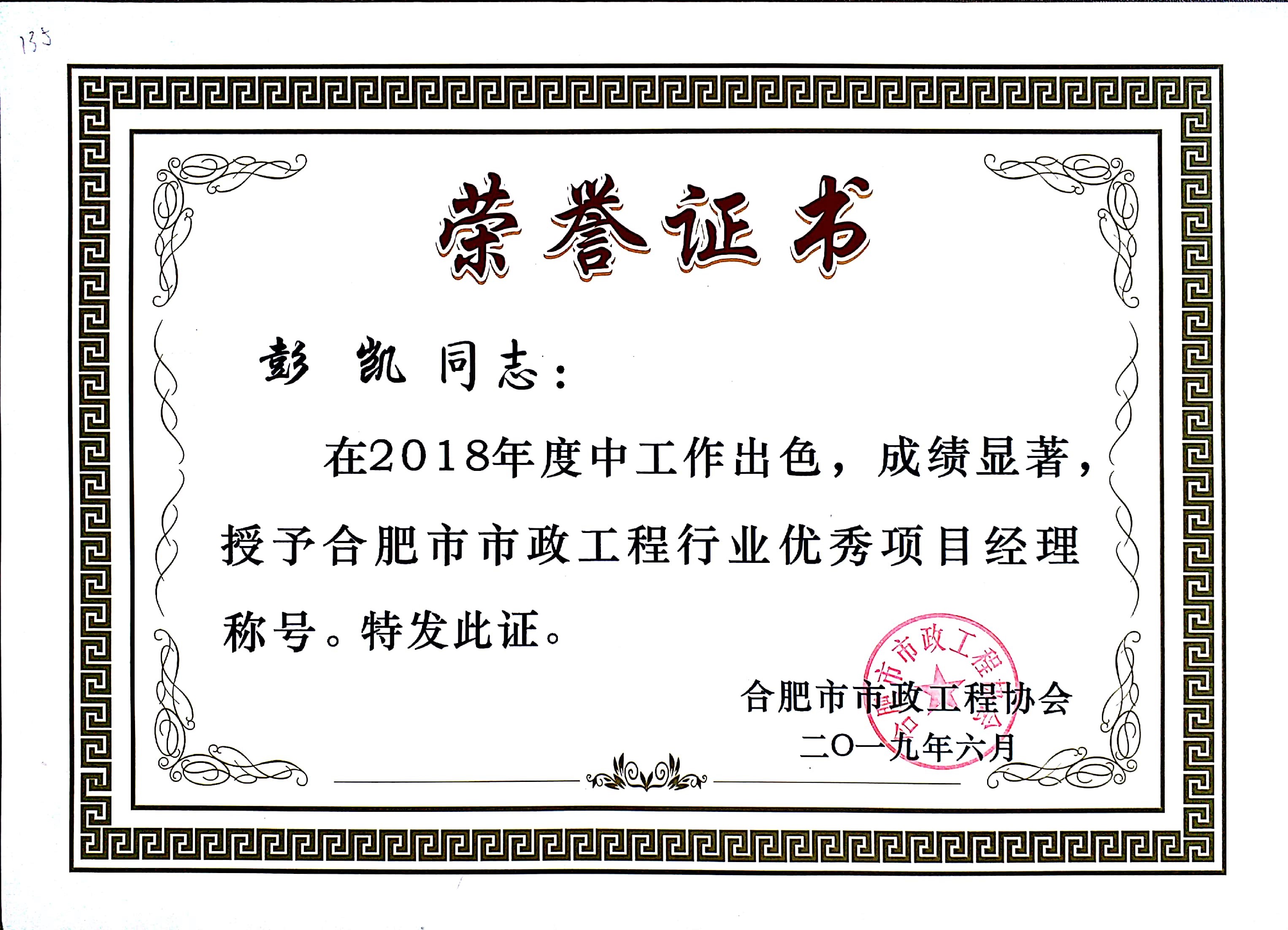 >彭凯2018市政优秀个人
