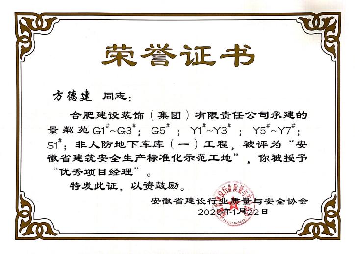 >景粼苑G1#-G3:G5Y1-Y3;Y5-Y7;S1#;非人防地下车库(一)——方德建优秀项目经理