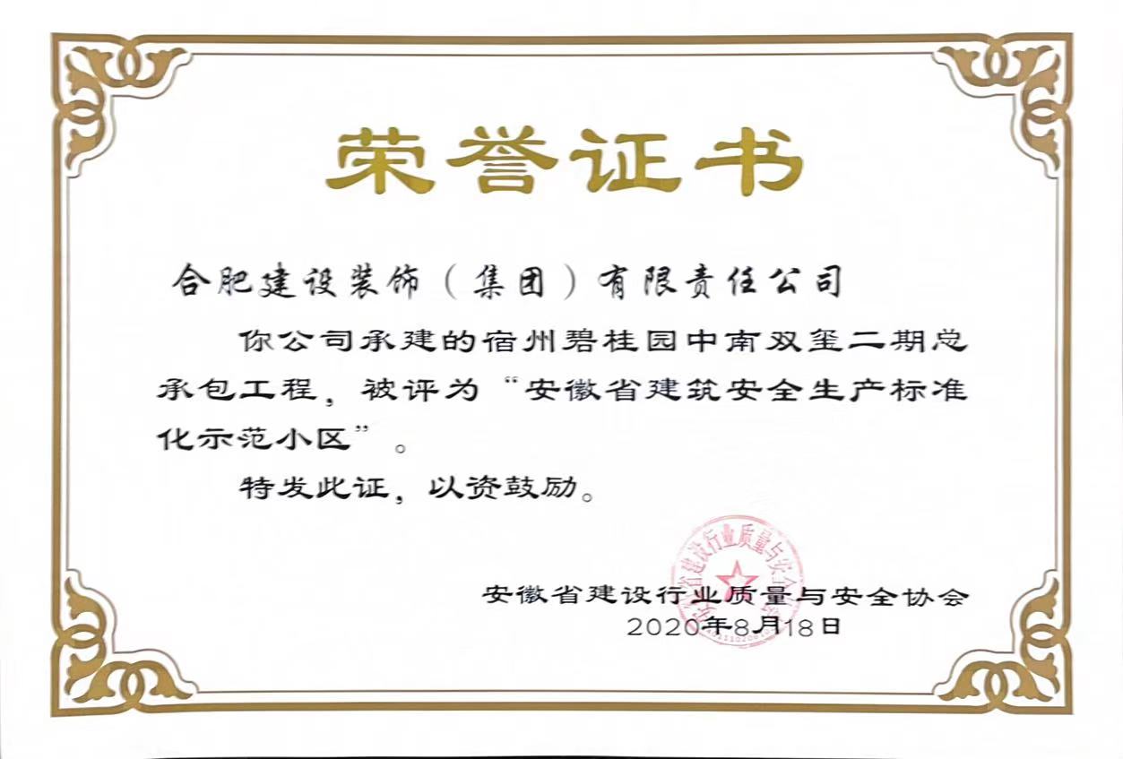 >宿州碧桂园中南双玺二期总承包工程--安徽省建筑安全生产标准化示范小区