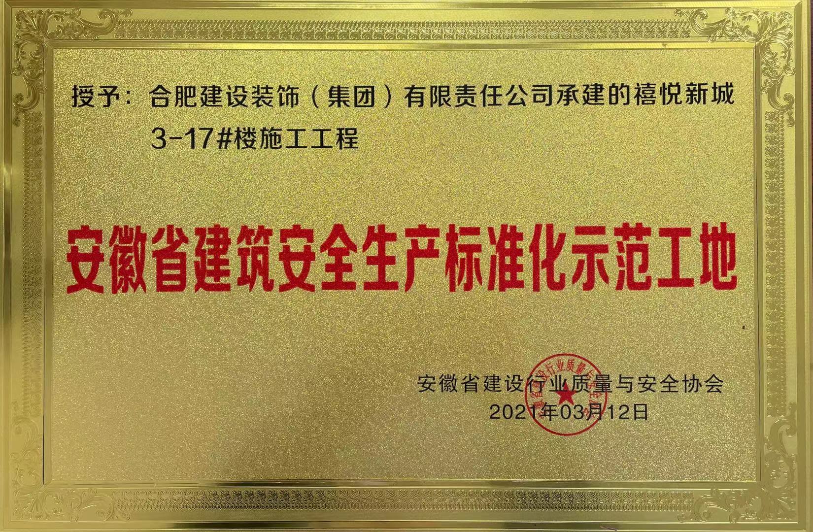 >禧悦新城3-17#楼施工工程——安徽省建筑安全生产标准化示范工地奖牌