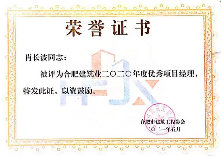 2020年合肥建筑业企业优秀项目经理--肖长波