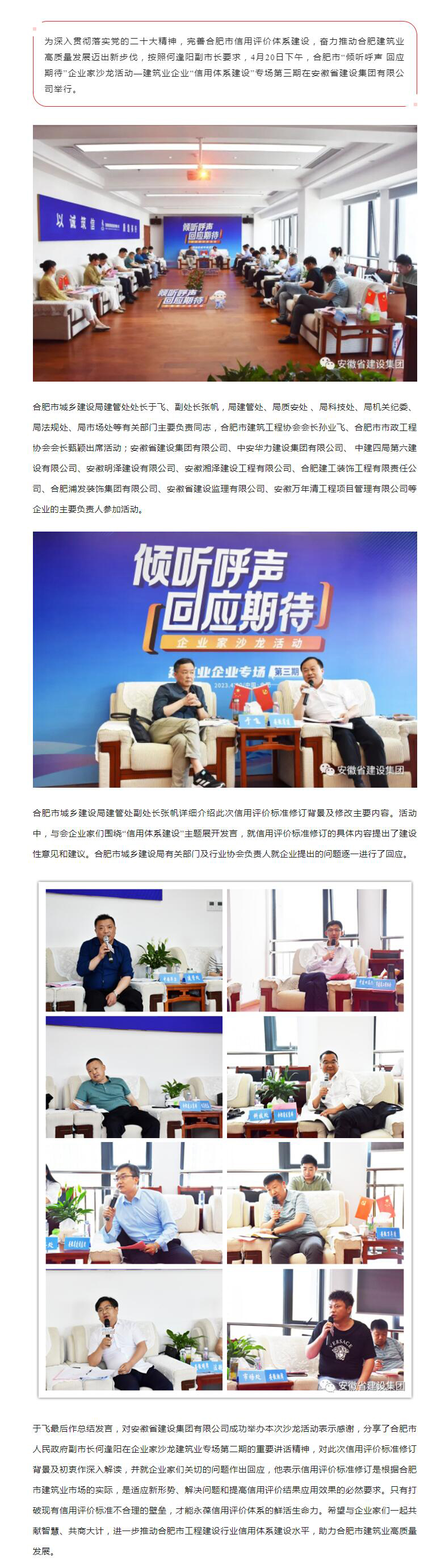 >合肥市“倾听呼声 回应期待”企业家沙龙活动在集团举办